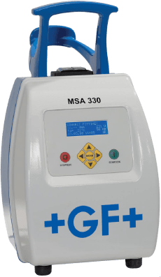 A unidade de eletrofusão MSA 330 combina alto desempenho em juntas com manuseio fácil e seguro. A memória interna tem capacidade para 1000 registros de juntas, para transferência de dados a unidade é equipada com uma interface USB. Os formatos de registro são PDF e CSV, ambos gerenciáveis com aplicativos de software de PC comuns e gratuitos. Um menu de operação intuitivo orienta você durante todo o processo de junção. Para entrada de dados de fusão, um scanner está conectado. Todo o processo de soldagem é controlado e regulado com compensação de saída de energia dependendo da temperatura ambiente e da indicação do tempo de resfriamento.